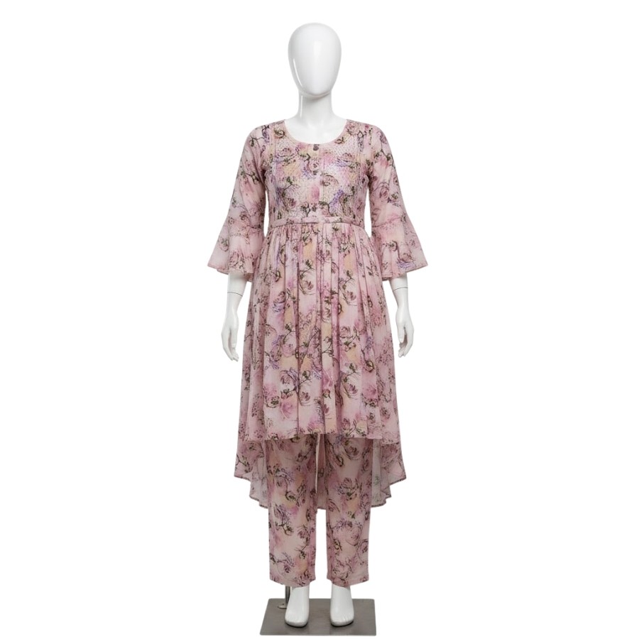 This soft, flowy ensemble blends modern elegance with timeless comfort — featuring a flattering peplum-style top, flared sleeves, and wide-leg trousers in a dreamy floral print. Perfect for both everyday sophistication and special occasions.
