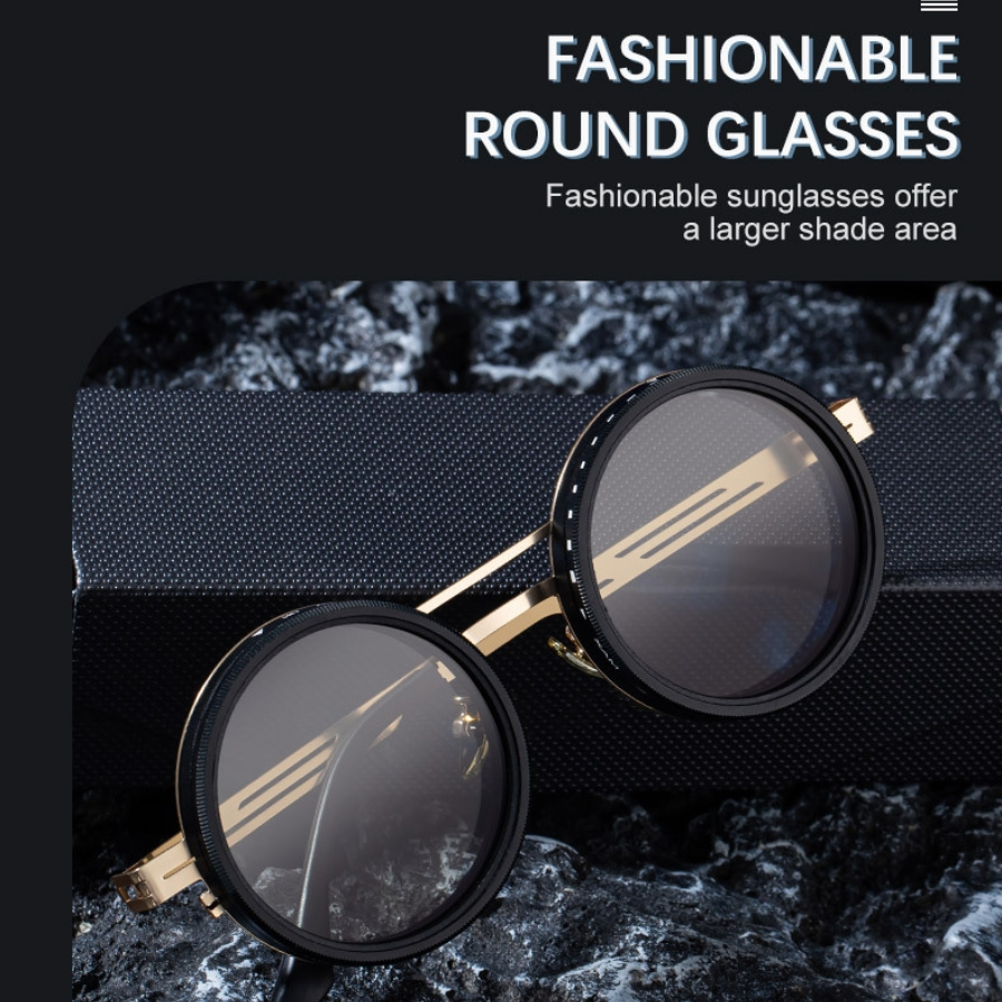 Experience enhanced visual comfort with the ND9 Adjustable Light Reduction Sunglasses, designed for superior glare control and style. Featuring a sleek, round frame with a futuristic metal finish, these sunglasses include ND9 light-adjustable lenses that help reduce brightness and eye strain in various lighting conditions.