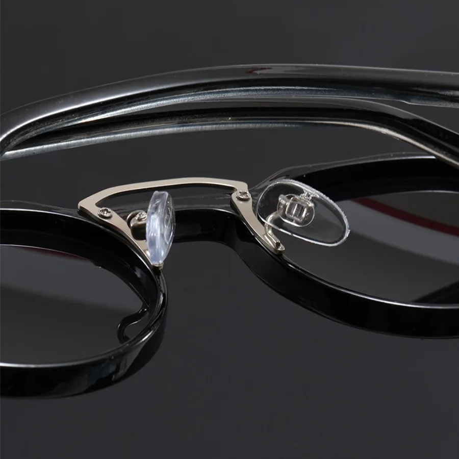 Premium Details: Sturdy hinge construction, silver stud detailing on the corners, and adjustable clear silicone nose pads ensure a comfortable, non-slip fit for all-day wear.