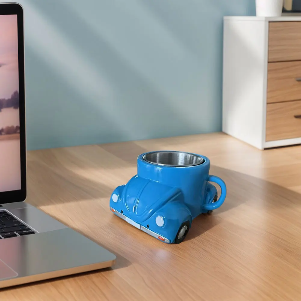 Striking Automotive Design: This mug brings the look and feel of a sleek car right into your hands. Its smooth curves and stylish contours give it a dynamic, road-inspired appearance.