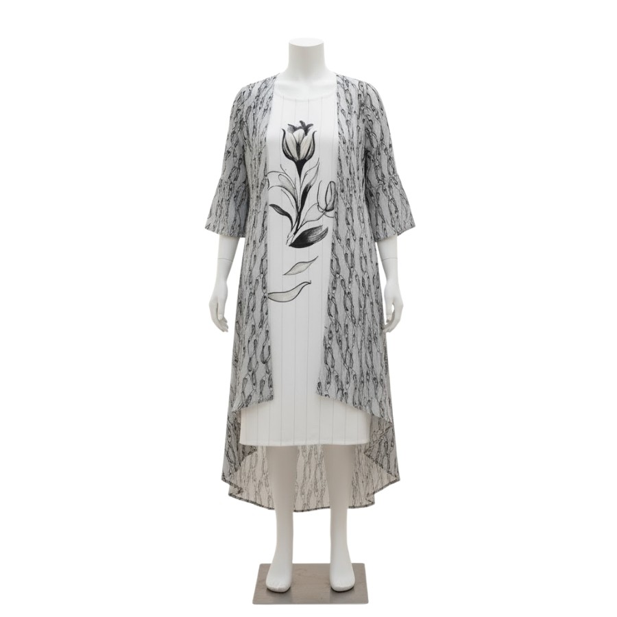 Design: Delicate floral motif on a graceful white base with a flowy printed overlay